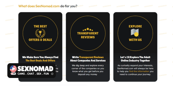SexNomad is a comparison and review site that helps users find the best adult platforms, with a strong focus on live cam sites.